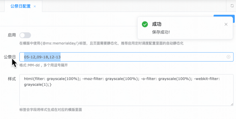 可以根据配置的公祭日日期页面会灰度展示。