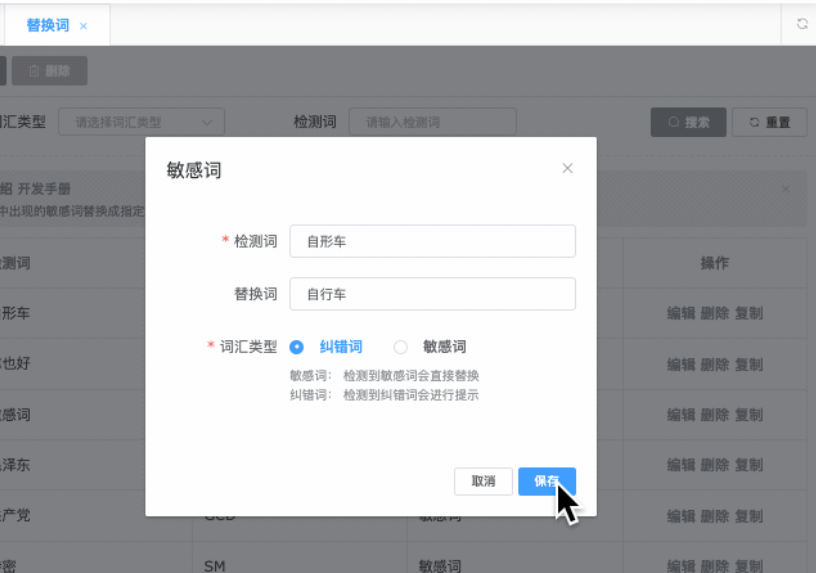 替换词/纠错词,能可自动对文章内容特定词语进行纠错、对敏感词进行屏蔽。